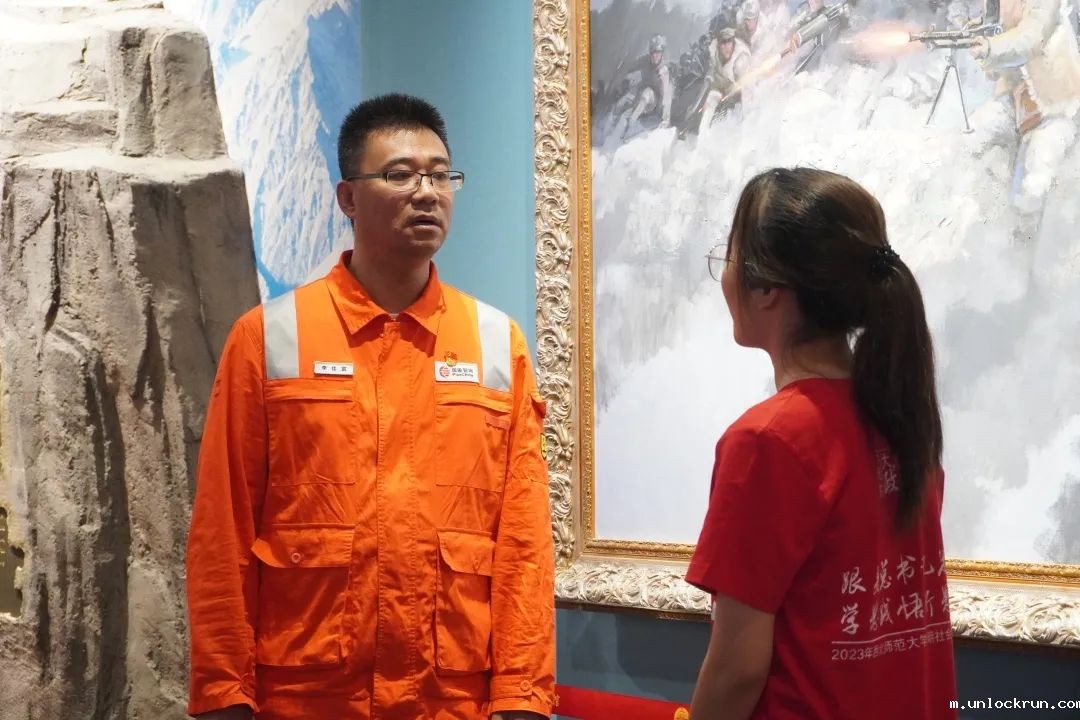 参观途中,实践团还与前来纪念馆学习的国家管网员工李佳富进行了短暂交流。李佳富介绍说,古浪战役纪念馆是“全国红色旅游基地”、“甘肃省中共党史教育基地”、“甘肃省爱国主义教育基地”。不少青年党员来到这里,重温入党誓词,用心感受党领导人民军队艰难曲折的奋斗历史。他接着说,“在纪念馆中,我看到了许多烈士的照片和介绍,他们每一个人都是英雄,他们用自己的生命换取我们今天的和平,这种伟大的精神值得我们每一个人学习,他们的事迹激励我们努力奋斗,为社会主义事业贡献自己的力量。”