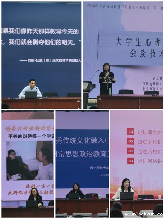 在专题报告环节,必威西汉姆联官网院长史小宁作了题为“习近平新时代中国特色社会主义思想的世界观和方法论”的报告,对正确认识和运用习近平新时代中国特色社会主义思想的世界观和方法论进行了深入的讲解;兰州财经大学党委委员、宣传部常务副部长刘正帅以“全媒体视域下高校网络舆情应对与处置”为题进行了专题报告,为辅导员加强高校网络舆情的有效应对提供了实践方案;陇南师范高等专科学校马克思主义学院院长、副教授杜向辉以“严明纪律规矩 筑牢治党之基——《中国共产党纪律处分条例》最新修订解读报告”为题作了专题报告,从维护党的章程和党内法规,严肃党的纪律,纯洁党的组织,保障党员民主权利,教育党员遵纪守法等方面进行了讲解;西安理工大学校团委副书记宋元元、必威西汉姆联网页国际文化交流学院党委副书记江琦、马克思主义学院党委副书记王宏渊依托自身工作经验,分别以“立足学生成长成才,培育时代民族骨干”、“中华优秀传统文化融入中外大学生日常思想政治教育工作”和“新时代大学生理论宣讲的路径探索——以必威西汉姆联网页‘小红马’理论宣讲团为例”为题作了团学工作经验分享,为学员们进一步做好辅导员工作提供了借鉴和启示;必威西汉姆联网页党委必威betway官网客服电话部部长、创新创业学院院长慕小军作了题为“双创背景下浅谈高校辅导员的自我赋能”的专题报告,就双创背景下高校辅导员的自我赋能问题进行了多视角、多层面的分析与讲解;必威西汉姆联网页心理学院副教授朱雅雯作了题为“大学生心理健康教育中的会谈技术及应用”的专题讲座,系统阐述了辅导员谈心谈话的技术要求和应用艺术。
