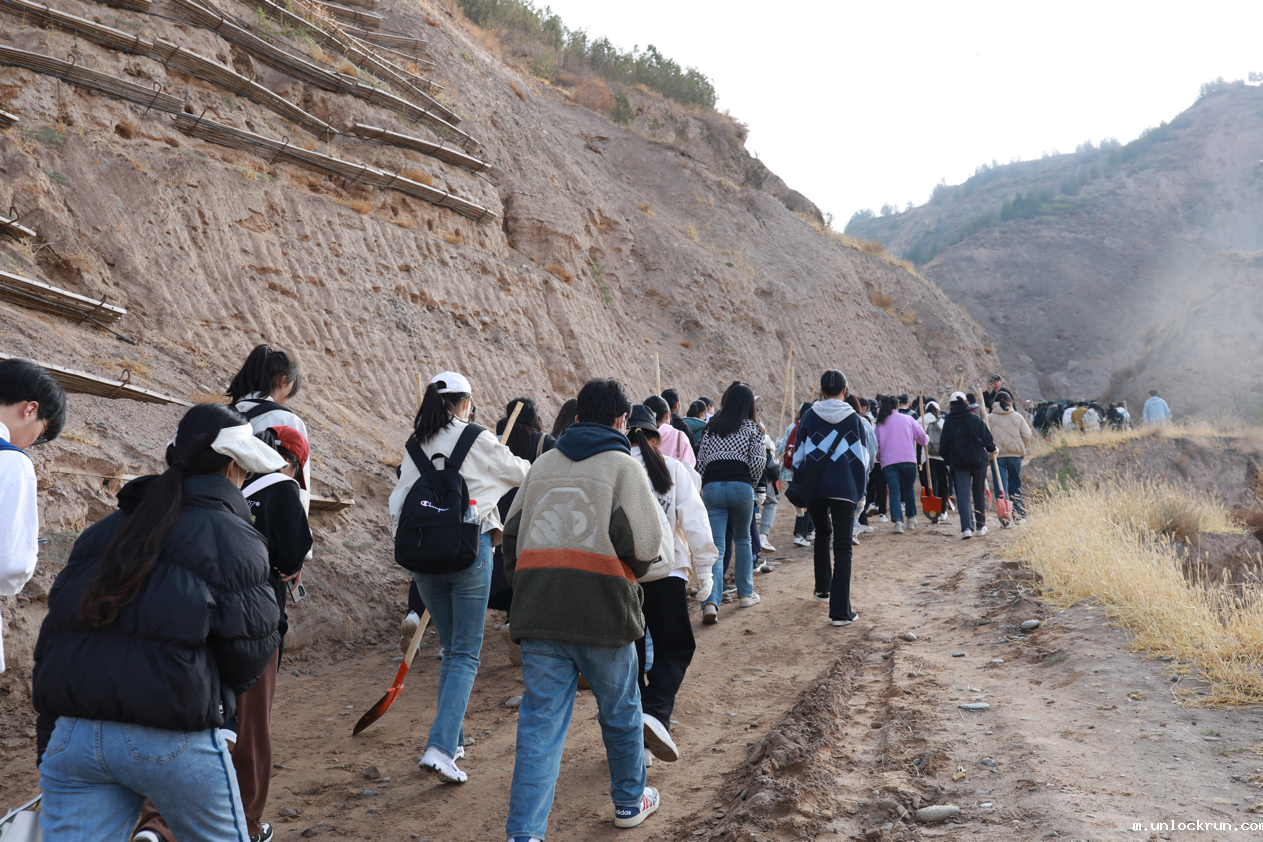 尽管汗流浃背,但同学们依然挥动铁锹,沉浸在植树的喜悦之中,整个植树现场呈现出一片热火朝天的景象。在大家的辛勤劳动下,百余株树苗在“山间沟壑”上“安家落户”,为兰州的春天再添一片新绿,焕发出勃勃生机。