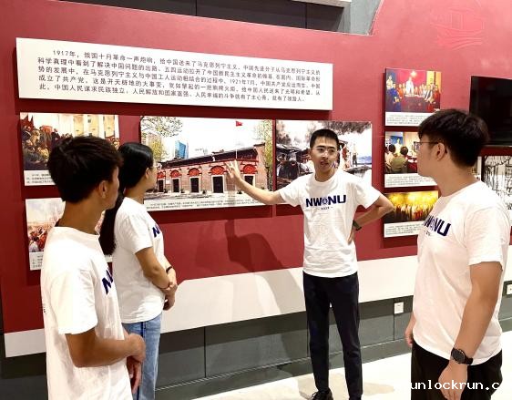 习近平总书记指出:“红色基因就是要传承。中华民族从站起来,富起来到强起来,经历了多少坎坷,创造了多少奇迹,要让后代牢记,我们要不忘初心,永远不可迷失了方向和道路。”一百年来的砥砺奋进、淬火成钢、坚如磐石、百折不挠、敢于胜利,构成了我们党伟大事业不断推向前进的力量源泉。跟随着讲解员的步伐,队员们来到了此行的最后一站——党史发展纪念馆。全馆包含了“开天辟地、照亮前路”“万里长征、星火燎原”“全民抗战、中流砥柱”“民族独立、人民解放”这四个主题,以历史为主线,详细收录记载了中共共产党从成立到领导中华民族独立,最后带领中华民族走向伟大复兴的传奇历程。中国共产党波澜壮阔的发展历程震撼了每一位实践团成员的内心,每位成员在参观时无不为中华民族的崛起而感到一股强烈的民族自豪感。团队队员何子昊表示:“革命烈士们不畏艰险浴血奋战的英雄主义气概以及为党为人民英勇献身的精神深深地打动了我的内心。这种红色基因是我们的宝贵精神财富,作为新时代青年,我们要从他们的精神中汲取精神养分、凝聚奋进力量,为实现中华民族的伟大复兴贡献自己的一份微薄之力。”