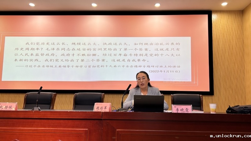 李晓霞老师作了题为《以党的自我革命引领新的赶考之路——党内集中教育的视角》的报告。李晓霞老师首先阐述了马克思、恩格斯、列宁关于加强科学理论武装的思想与实践,以此来阐释党内集中教育的理论渊源;接着以时间线的方式梳理了党内集中教育的历史发展脉络;然后简明扼要地阐述了党内集中教育的历史演进特征和基本历史经验并总结出了新时代党内集中教育创新发展的五个主要路径。在讲座最后,李晓霞老师着重强调了全面建设社会主义国家关键在党,全面从严治党永远在路上。